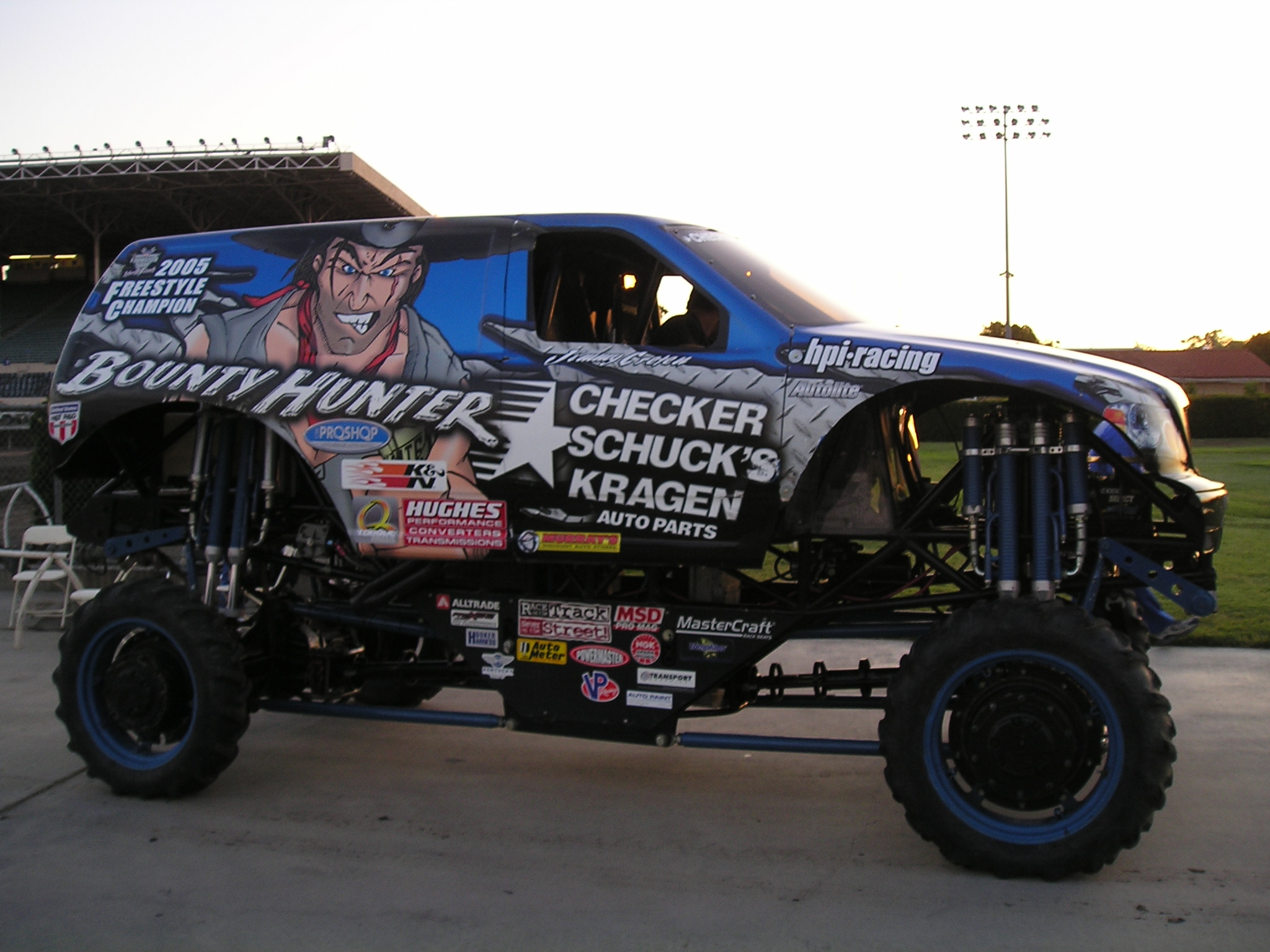If you watch “Extreme Makeover: Home Edition”, and if you happened to watch it tonight, you saw this monster truck, “Bounty Hunter”, on the show…my dad painted this monster truck and still does the touch-ups and the body work/fiberglassing!! So awesome to see it (and the driver, Jimmy Creten) on this show!