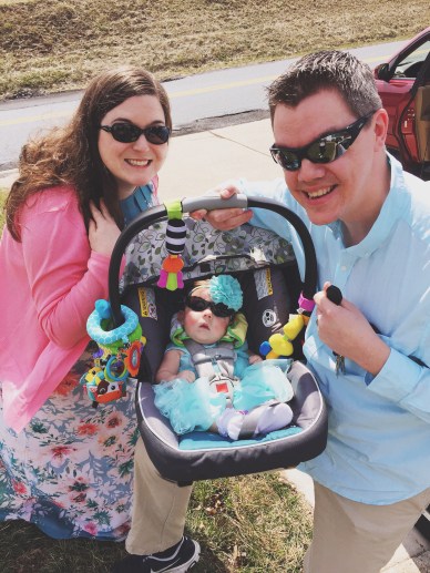 Oh, that beautiful girl! She’s rocking her Easter outfit! She’s too cool in her shades! 🙂 You all look fabulous!