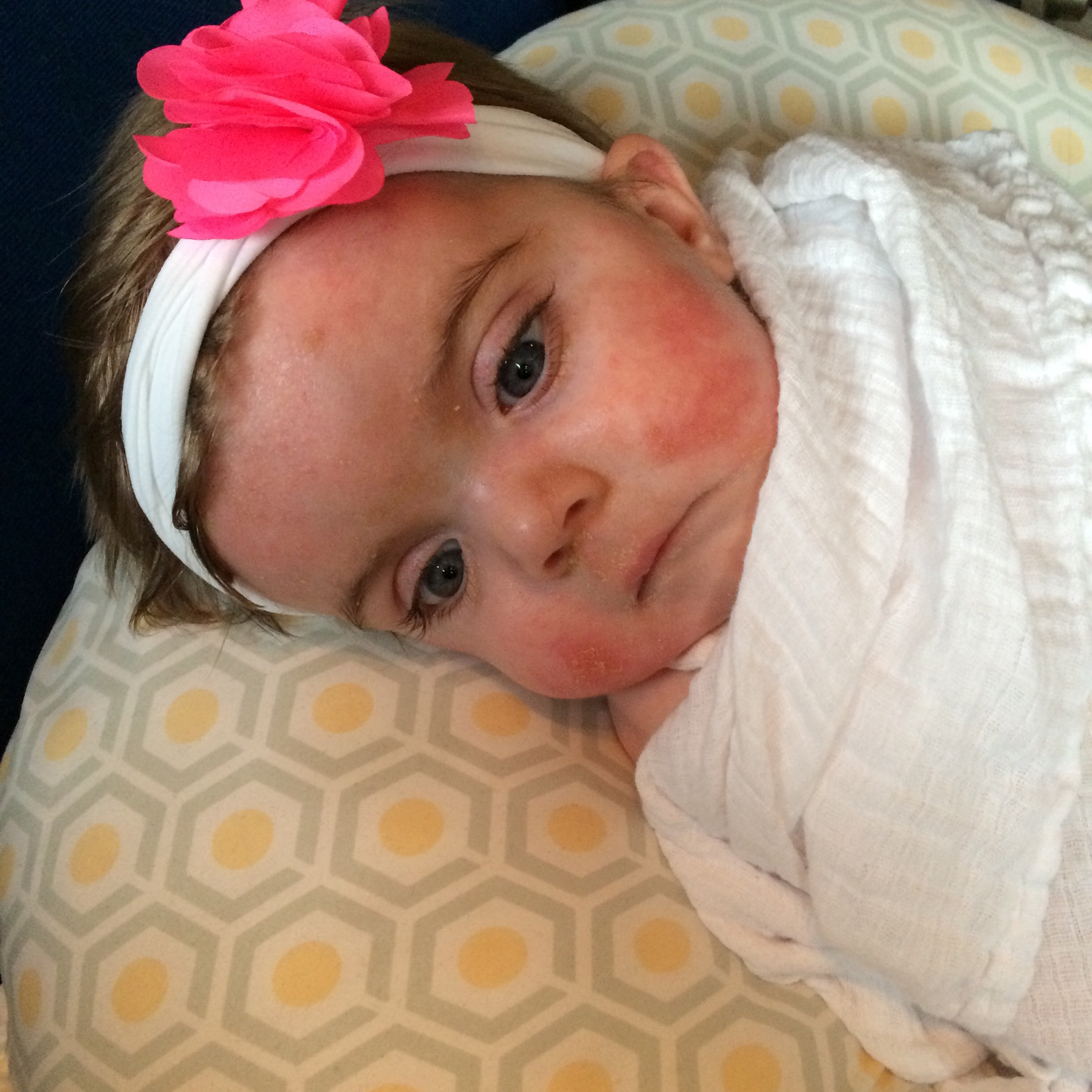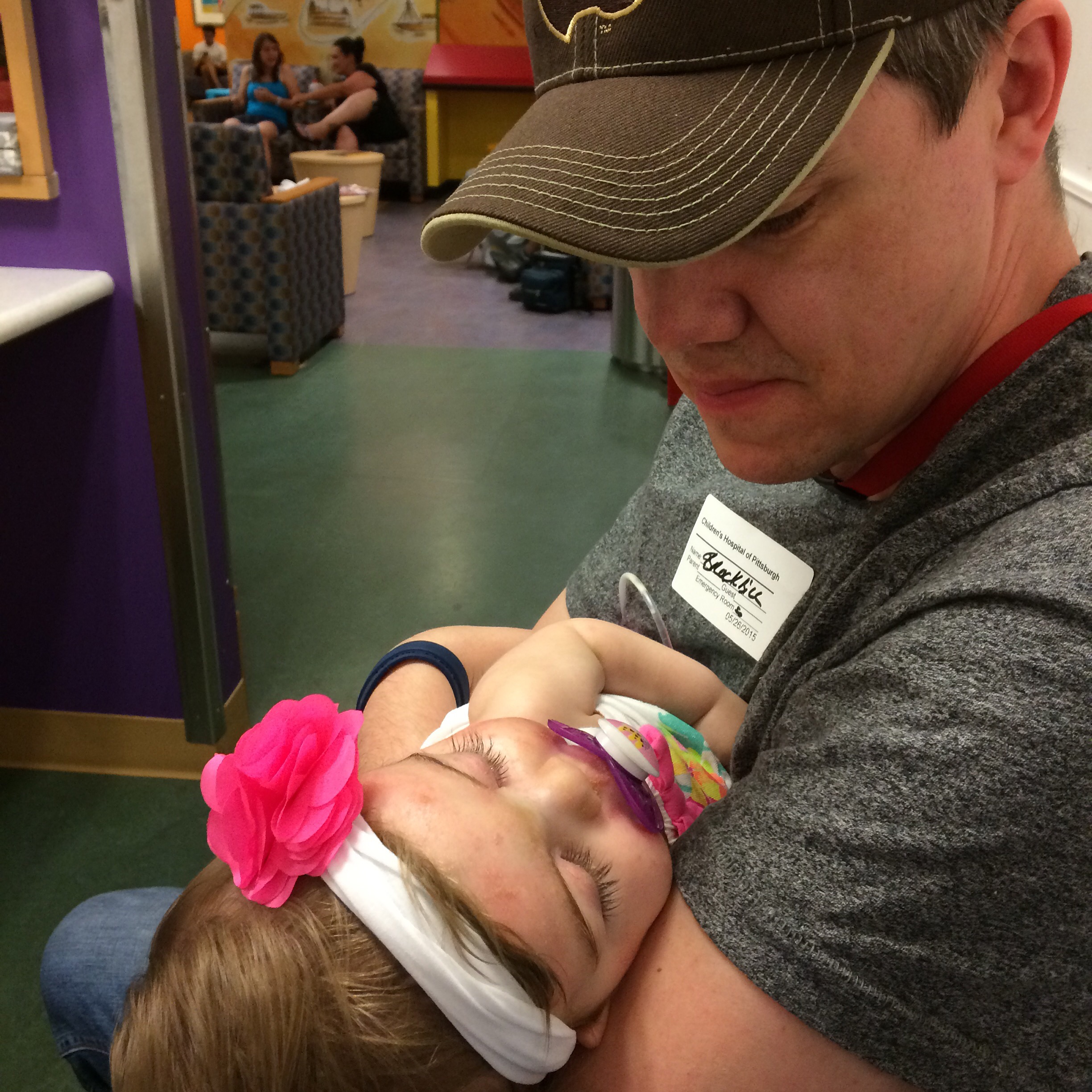 Brennan and I tried to reinflate it and discovered a hole. Thankfully he was able to get it back in so that we could feed her, but we are currently in the ER at CHP for a replacement tube.