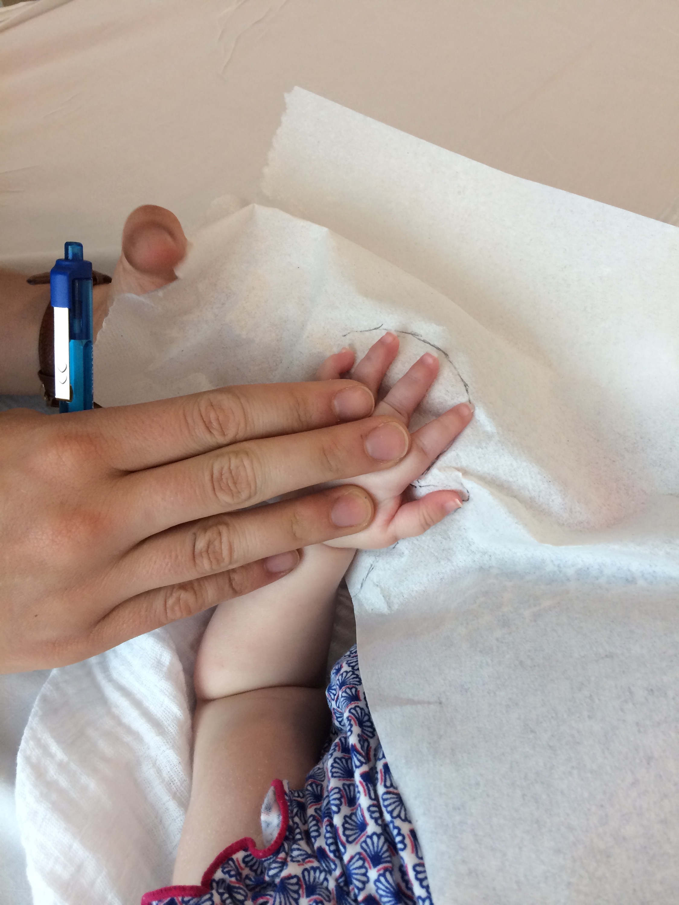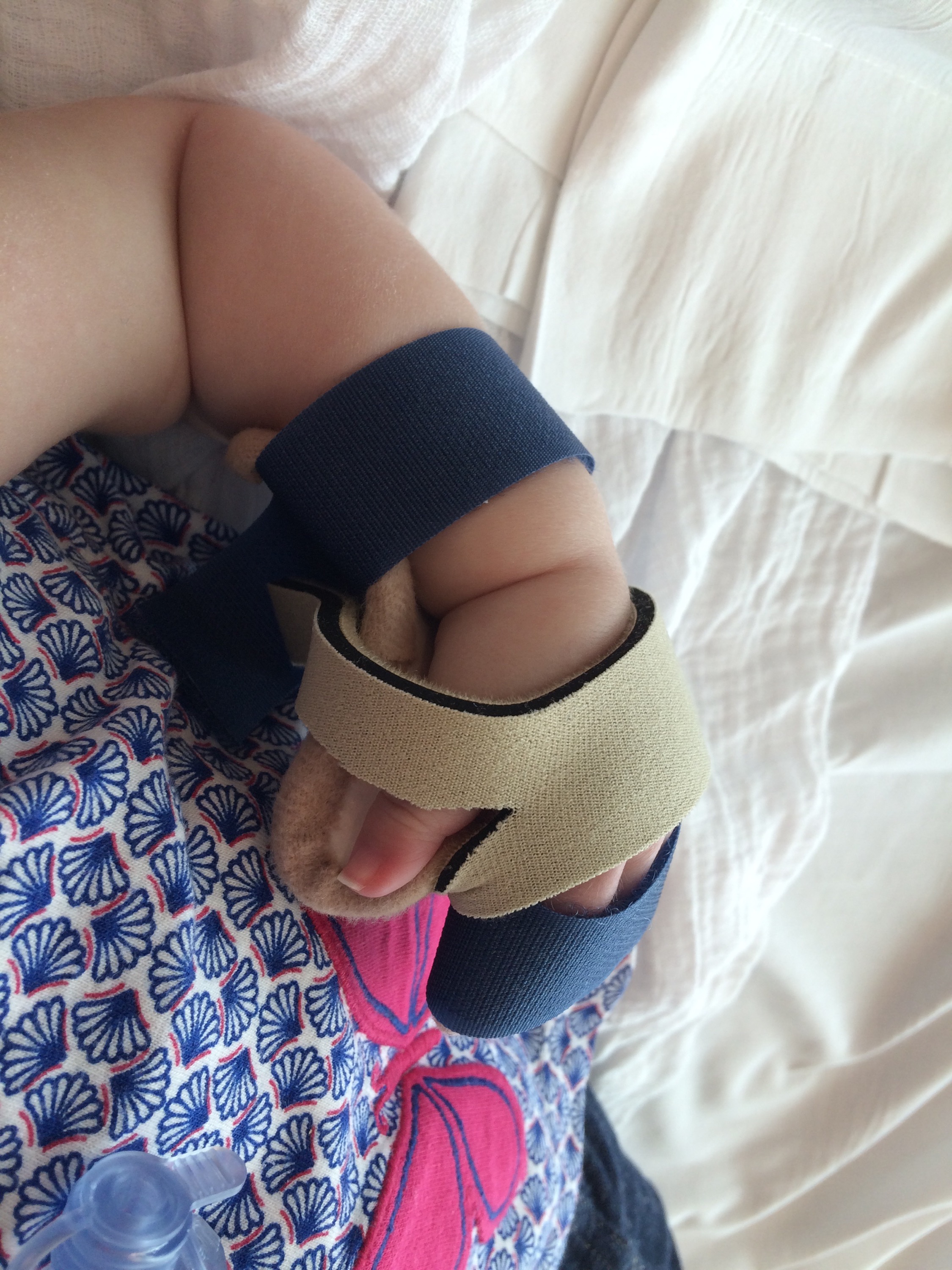 After audiology we went to occupational therapy to have Tori fitted for splints. The splints will help keep her hands open and not clenched. We know that her left thumb hurts her when we move it and having splints will hopefully ease that discomfort.