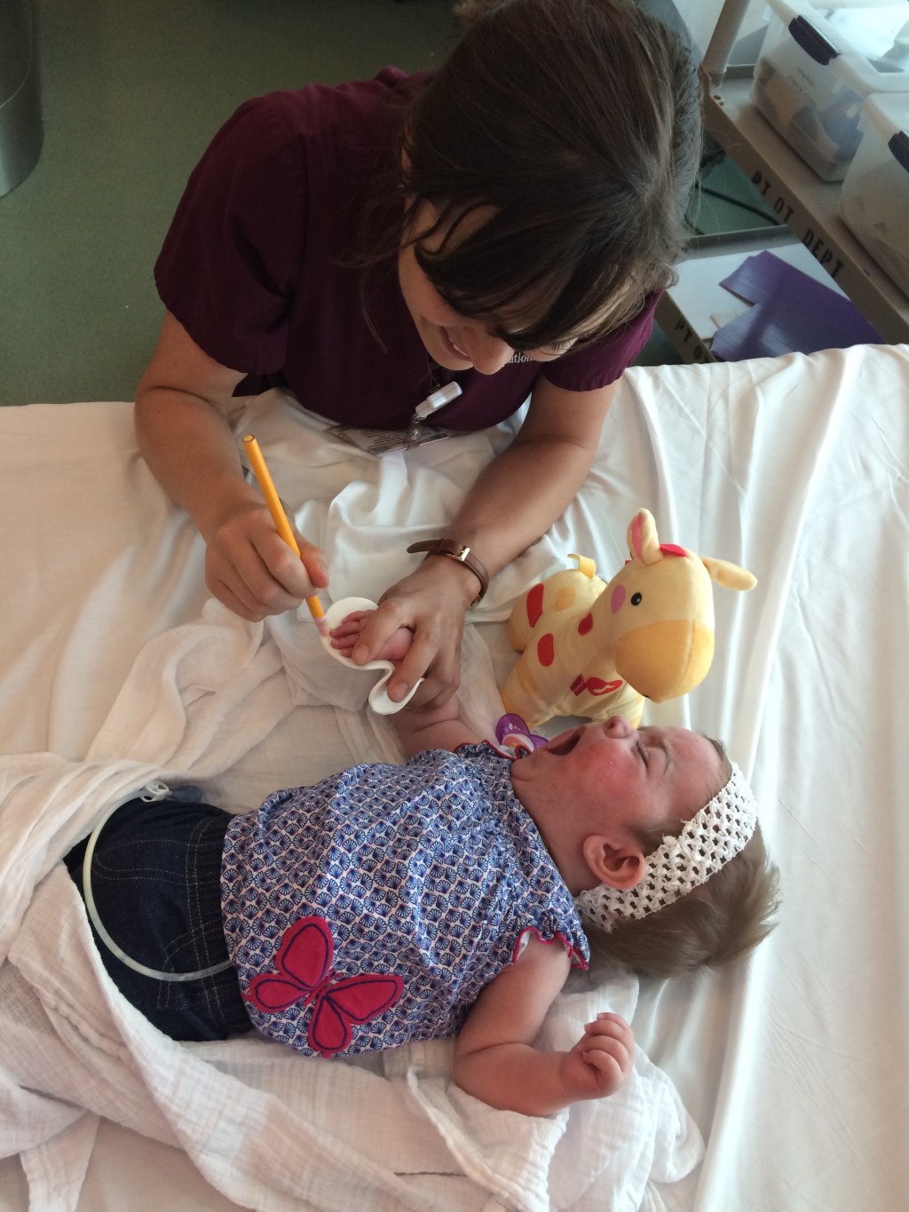 She then was evaluated by Dr. escolar herself, along with two doctors (from India and Hungary) who are learning from Dr. Escolar this week.