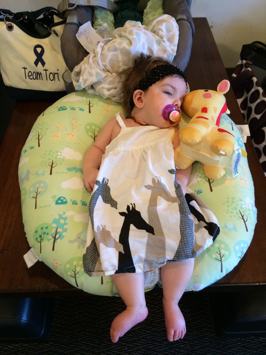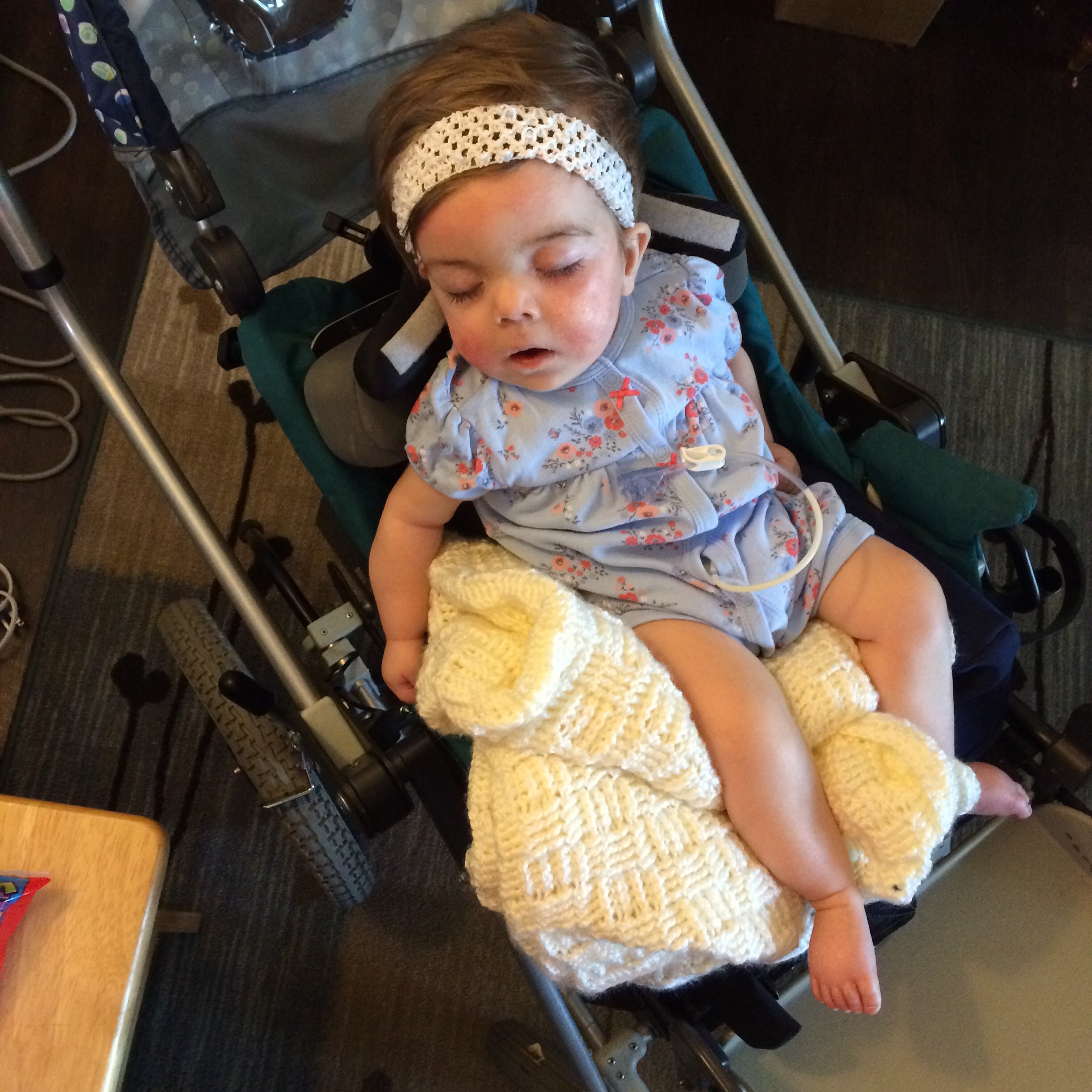 On Friday, Tori was measured for her new stroller and apparently loved the sample one because she fell asleep!