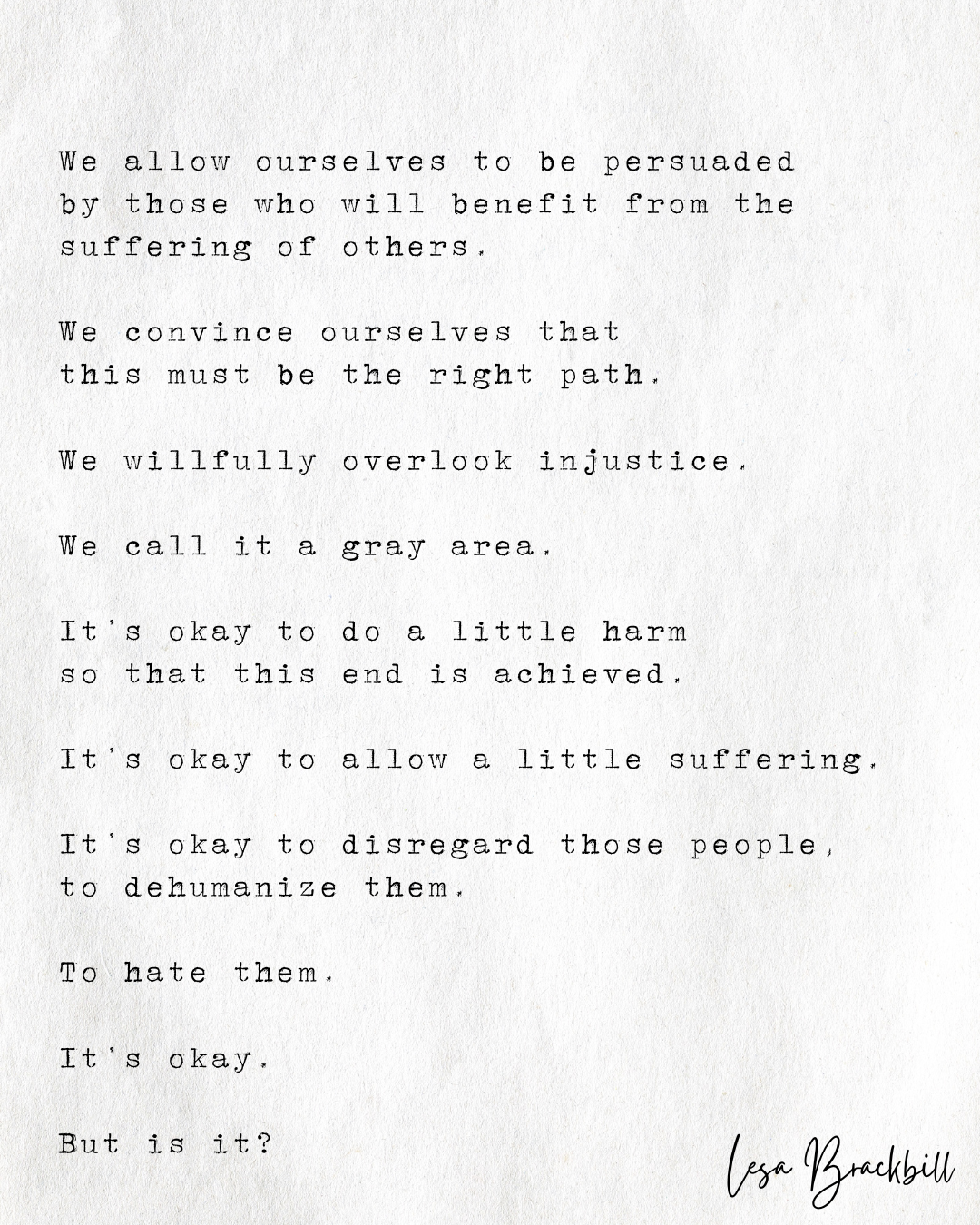 We willfully overlook injustice.